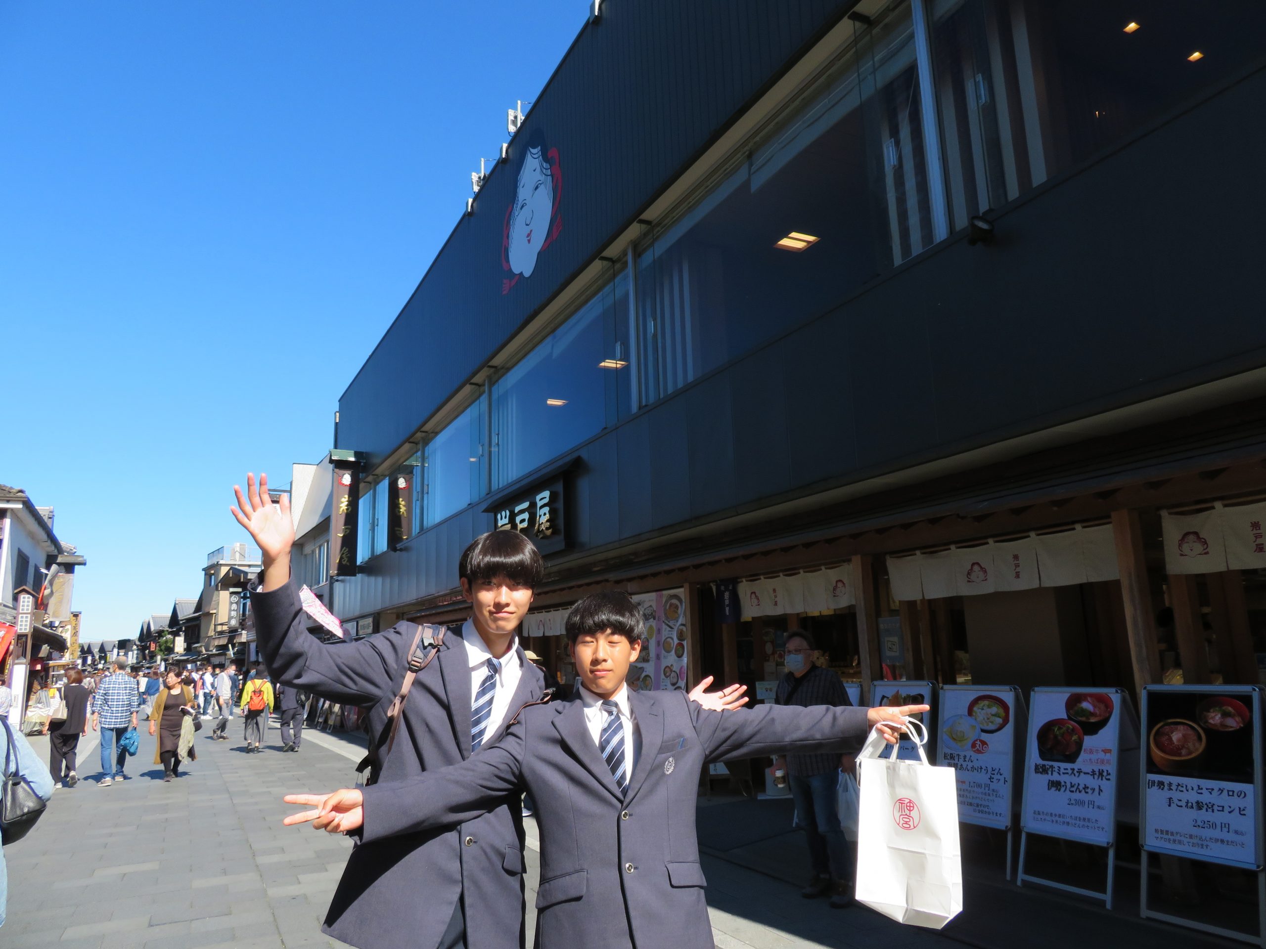 10月20日(水)、研修旅行2日目は伊勢神宮でのお参り、おかげ横丁での散策をしたあとに鳥羽水族館へ行きました。