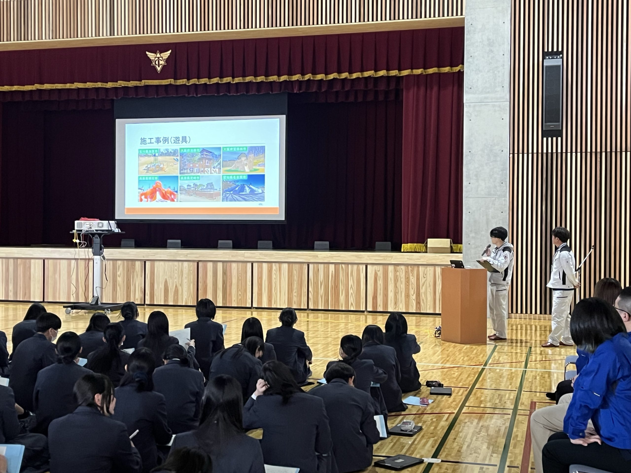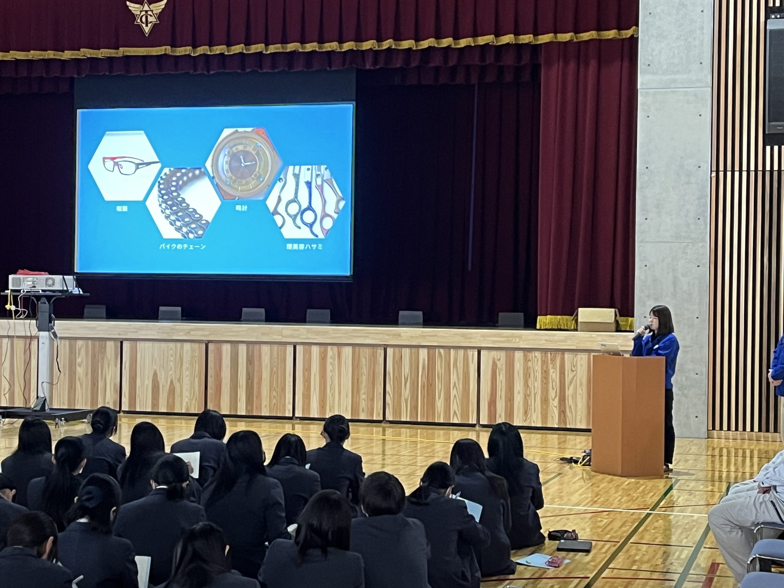 2年生 課題研究 2025.04.21 中学生の皆さんへ 商業マネジメント科 情報ビジネス科 機械創造科 都市・建築科 電気情報科 今年度から新たに2年の課題研究が始まります。商業、工業8クラスが同時に実施します。 まず、4社からテーマや課題をいただき、その中から各自問いを立て、解決に向けて取り組みます。今回は公園の遊具などを企画•設計•製造している上屋敷工業(株)さんと、メガネをはじめ、様々なものにめっきや塗装をして商品価値を高める(株)ワカヤマさんにお話をうかがいました。両社ともテーマをわかりやすく説明していただいたのはもちろんですが、生徒たちはまず、会社の事業内容に興味を惹かれたようです。来週は(株)増田空調さんとこしの都ネットワークさんにお越しいただきます。