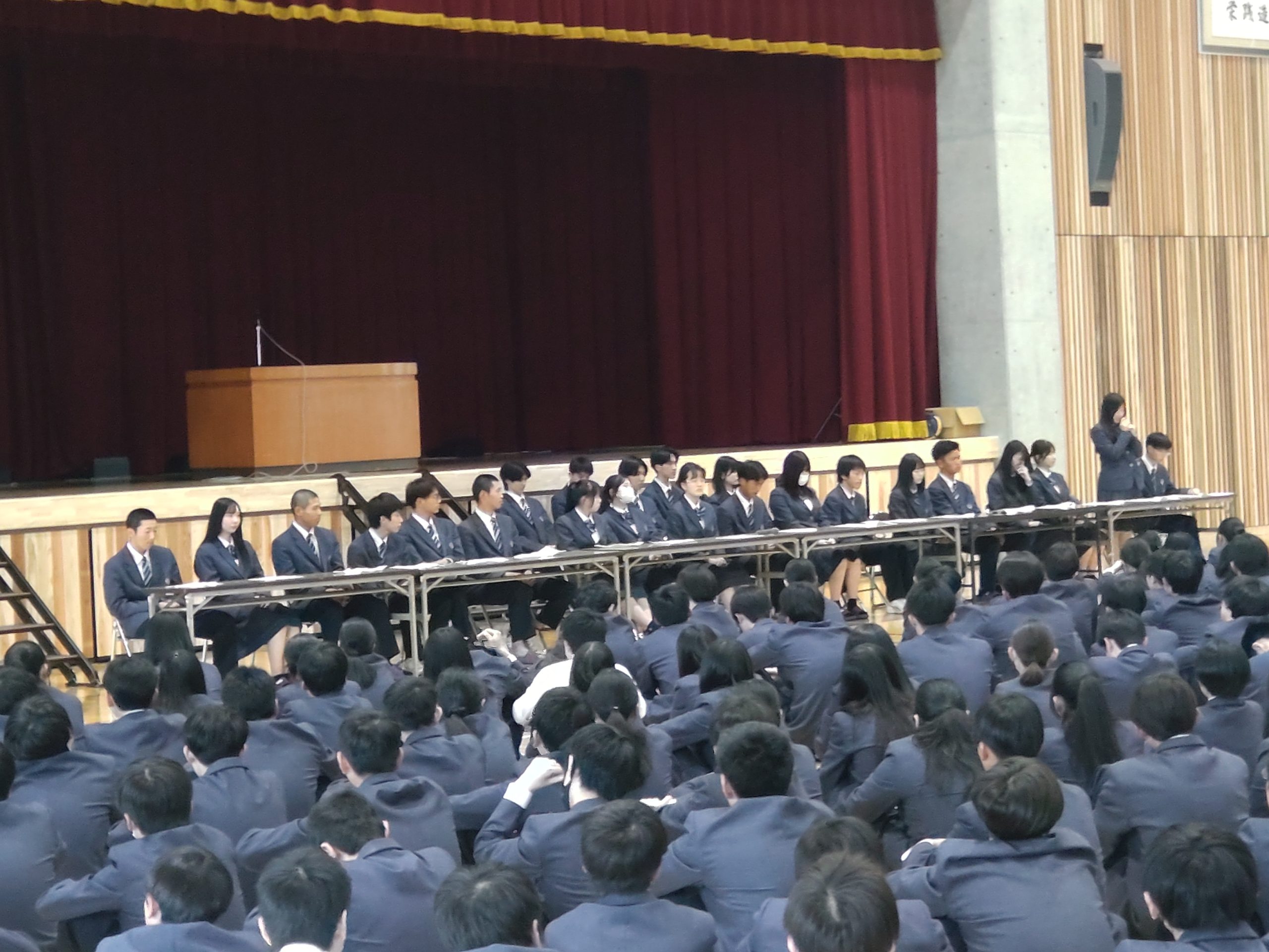 前期生徒総会が行われました。 総会では生徒会執行部の承認と各種委員会の活動目標・活動計画が発表されました。 学校を盛り上げられるよう頑張ります。