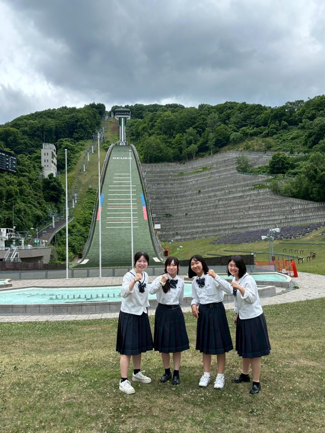 商業クラスは大倉山展望台・札幌オリンピックミュージアムに行きました。クラスごとに記念撮影したり、大倉山ジャンプ台を真上から見下ろし、競技選手の気持ちを体感したりしました。その後、新千歳空港に行き、出発までの時間を使ってお土産を買ったり、最後まで北海道での時間を満喫しました。