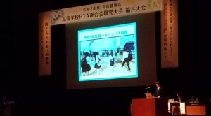 その後、内田会長が「統合から未来へ~新しいPTAのかたちを求めて~」という演題で福井県代表として発表を行いました。