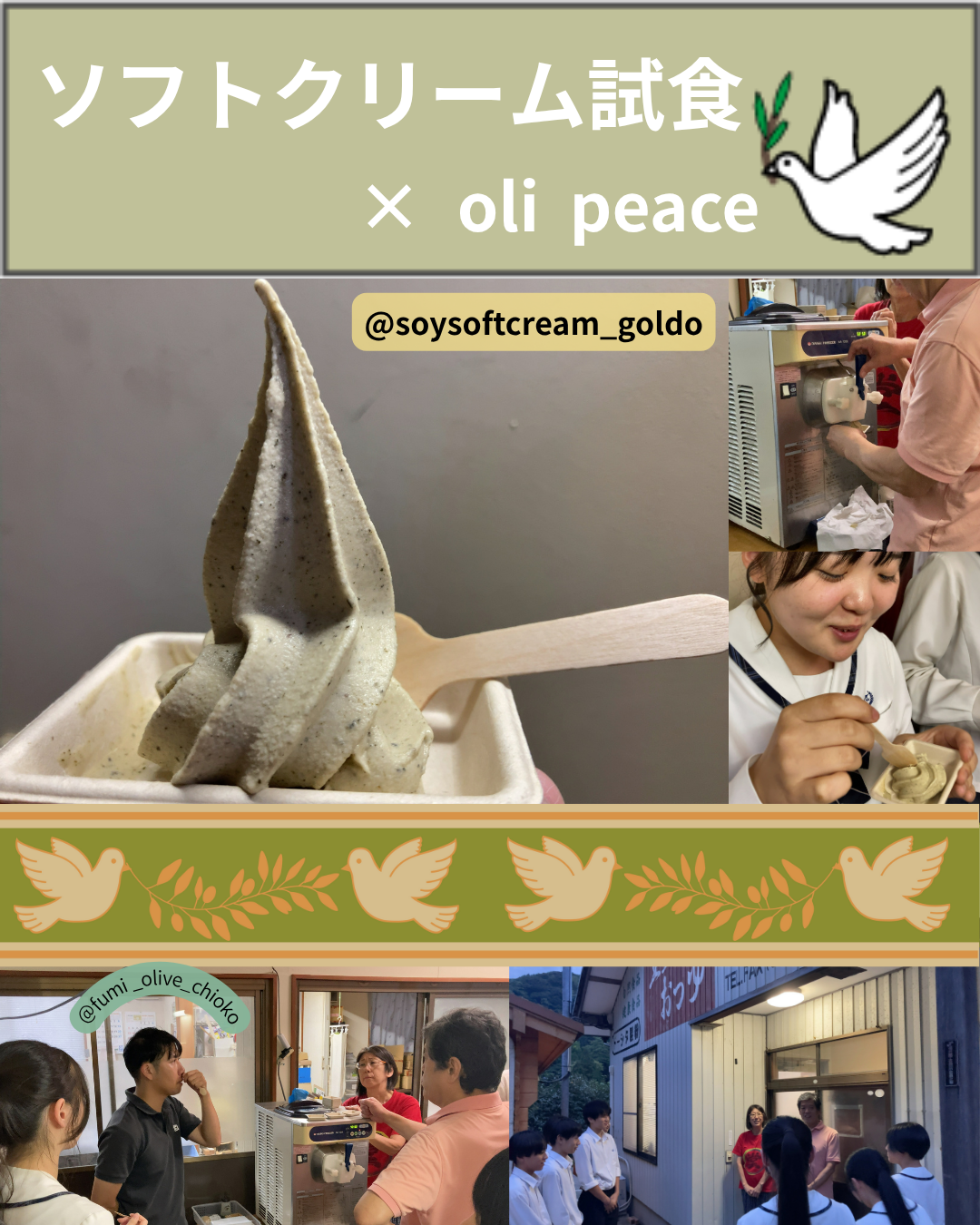 「豆乳ソフト+オリーブパウダー」と「豆乳きな粉ソフト+オリーブパウダー」の2種類を食べ比べました。オリーブの風味が感じられ、苦みも少なく、豆乳のコクと絶妙にマッチしたソフトクリームが出来上がりました。とてもおいしいですよ😊