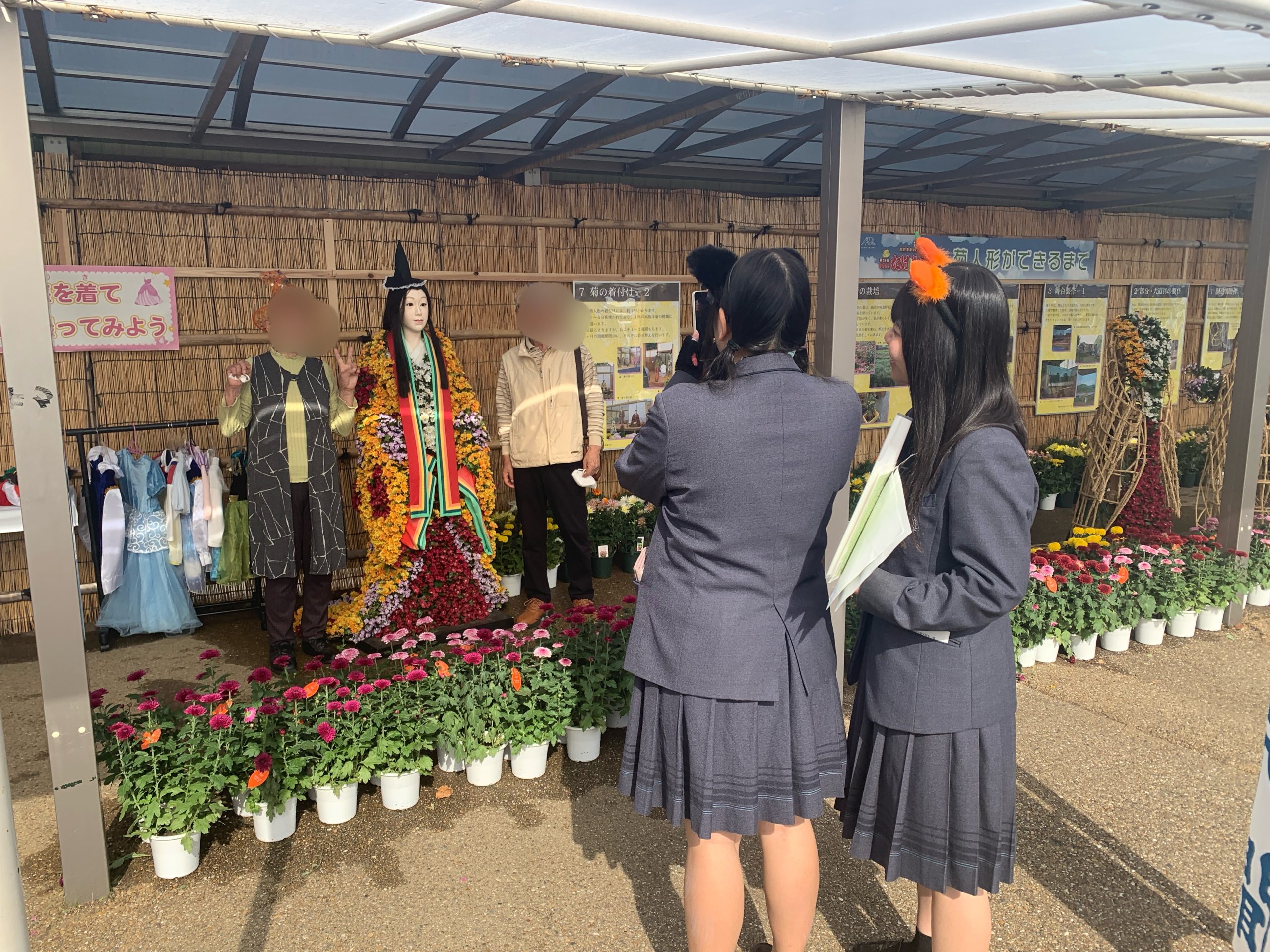 商業マネジメント科3年生の「観光ビジネス」を履修している生徒(ガイド班)が、10/25(土)に武生菊人形内のガイドをさせていただきました。