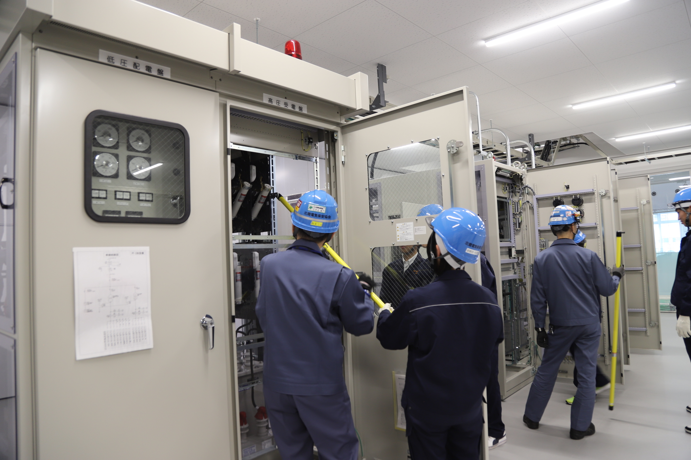 【電気情報科】高圧受電設備の見学・体験会 2025.11.27 授業 電気情報科 11/27(木)2年電気情報科の生徒は北陸電気保安協会本社ビルにて「高圧受電設備の見学・体験会」に参加しました。 本校卒業生の方を中心に電気設備に関する説明と疑似体験を行いました。授業や資格試験などで学習した内容を実際に体験することができ、とても興味深い体験実習でした。