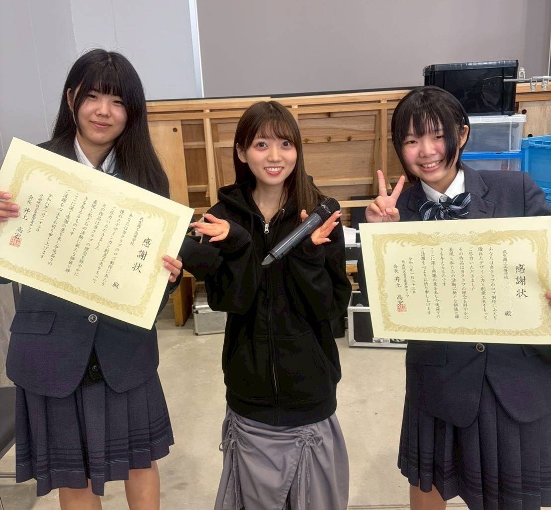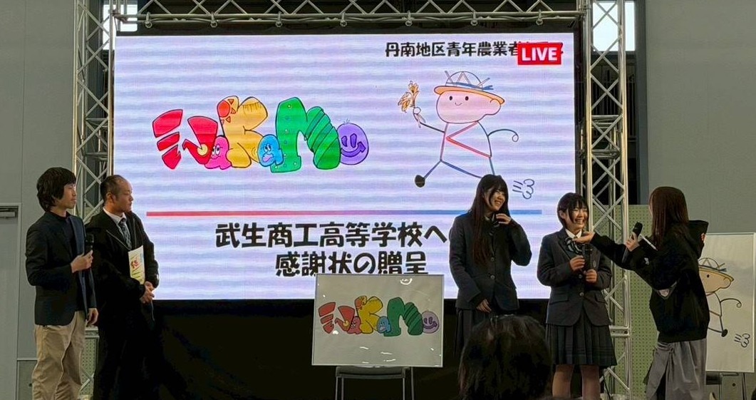 美術部_感謝状贈呈式 2026.02.16 部活動 1月30日、まさかりどんの館にて、但南地区青年農業者クラブ主催 フリーペーパー「WaKaNo」ロゴマーク制作感謝情贈呈式が行われました。 今回の司会は、元AKB48で、現在は福井県の地域おこし協力隊(チャレンジ応援コーディネータ)として活動されている、多田京加氏が務めてくださいました。 ロゴマークを制作したのは、本校美術部の2名です。 生徒たちが手掛けたロゴは、地域の若手農業者をつなぐ大切なシンボルとして今後幅広く活用される予定です。 地域の皆さまとのつながりの中で、生徒が社会と関わりながら成長できる貴重な機会をいただき、心より感謝申し上げます。 美術部のお二人、そして関係者の皆さま、本当にありがとうございました☆