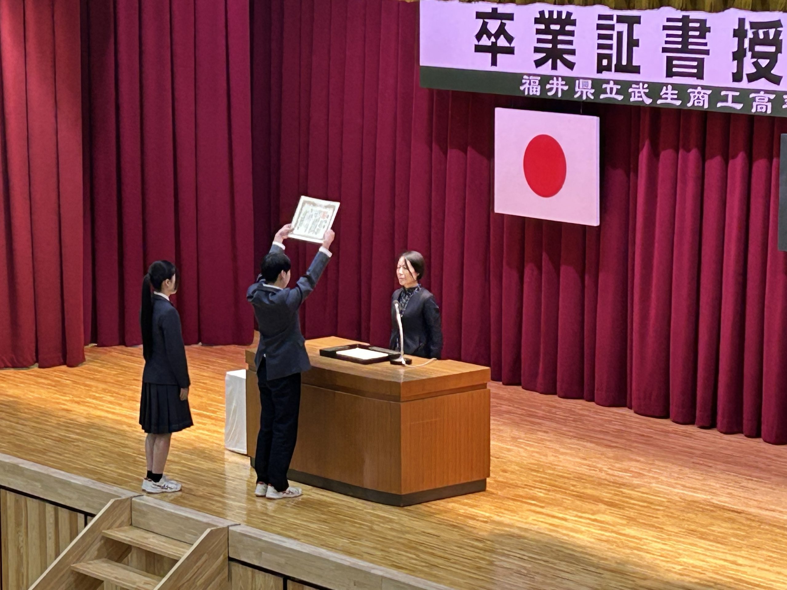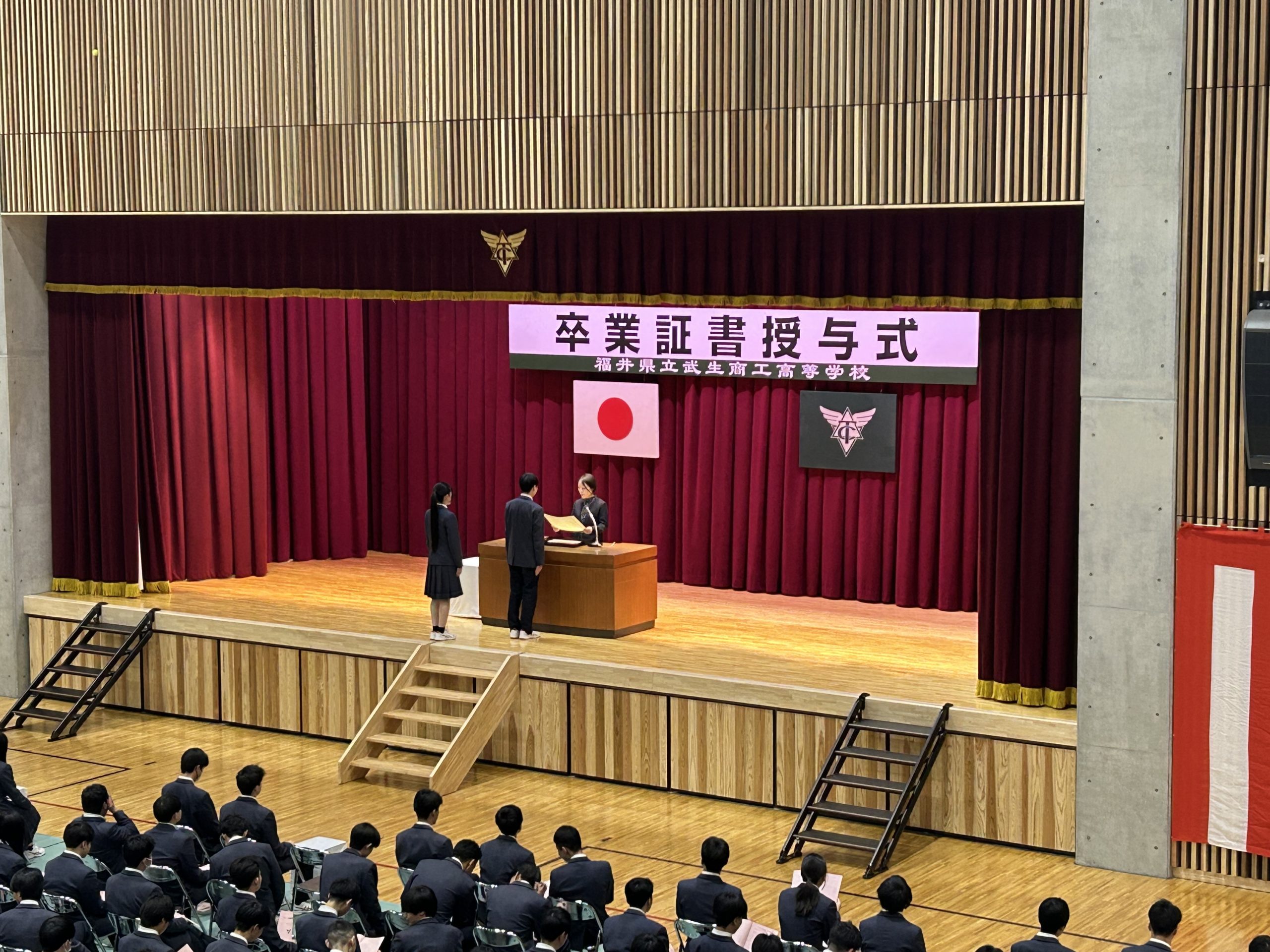 卒業式予行・表彰式・同窓会入会式・3年生を送る会 2026.03.02 商業学科 学校行事 工業学科 明日3月3日に卒業式を控えた本日2日、卒業式予行練習、表彰式、同窓会入会式、3年生を送る会を行いました。 卒業式予行練習の時点ですでに寂しさが込み上げるものがありました。 表彰式は、1,2年生が学年末試験2限後にリモートで見守る中、卒業生3年間の頑張りに対する表彰に際し憧れの眼差しでした。